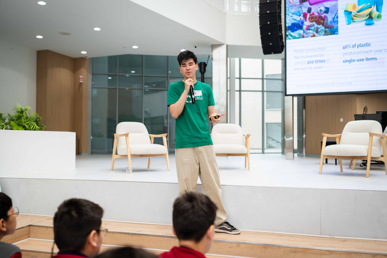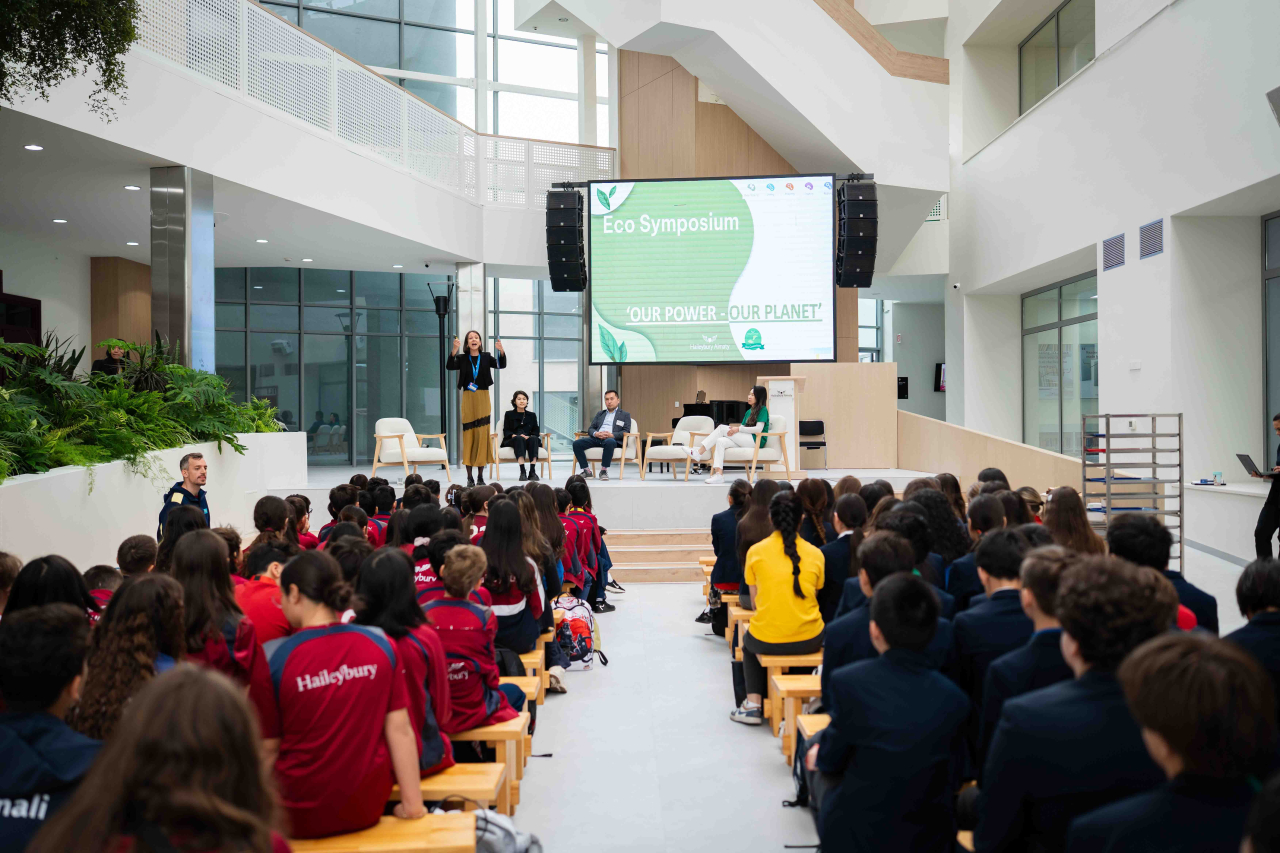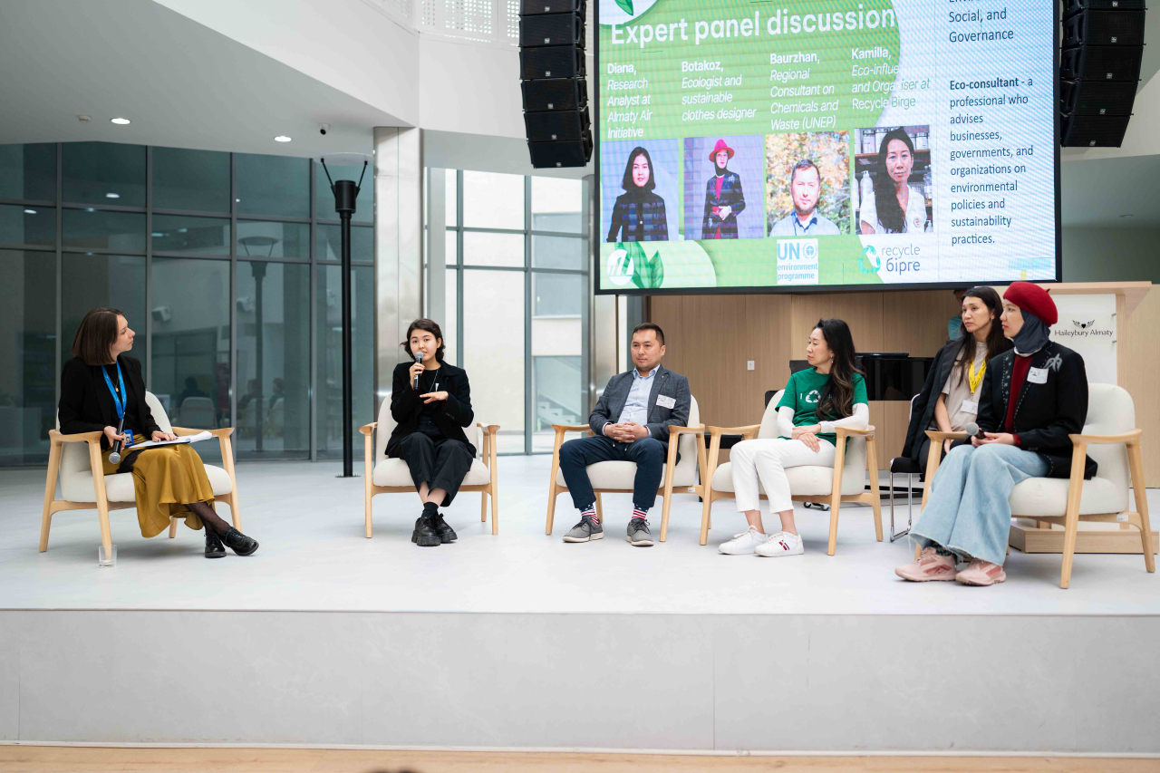 Симпозиум Жер апталығының аясында өтті. Осы аптада бүкіл мектеп қауымдастығына күн сайын бір шағын әдетті өзгертіп, оны тұрақты дағдыға айналдыру туралы ойлану ұсынылды. Сонымен қатар, біз Recycle Birge ұйымымен бірлесіп бір апталық қайта өңдеу байқауын өткіздік, оның нәтижесінде 1 100 кг-нан астам қалдықтың қоқыс тастайтын жерге түсуінің алдын алдық.